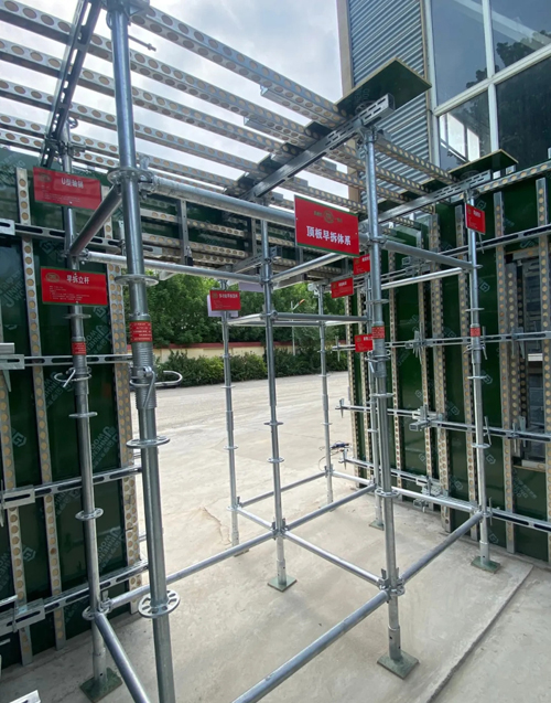 1.建筑樓層2.9~3.0m,立桿實(shí)現(xiàn)“一桿到頂”,支拆簡(jiǎn)單;2.早拆托扣隨立桿一起搬運(yùn),跟桿走;4.中間微調(diào),無需攀爬;5.立桿上有“限位釘”,可快速固定早拆托扣,精準(zhǔn)定位;